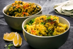 Il Kitchari è un antico piatto tipico della tradizione ayurvedica con azione purificante sull’organismo e in grado di riappacificare tutti e tre i dosha: Vata, Pitta e Kapha. Le sue proprietà antiossidanti, digestive, brucia-grassi e nutrienti rendono questo piatto molto utile anche nella prevenzione di patologie. Inoltre è molto invitante in quanto sprigiona squisiti aromi ed è anche molto colorato!